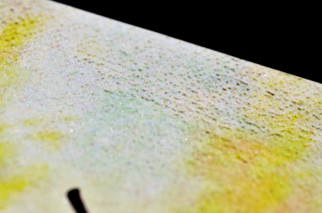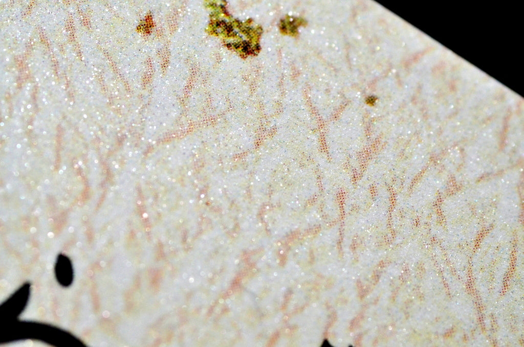 純白の用紙に白色ラメが散りばめられている厚みのある用紙です。