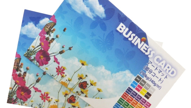 アート紙に両面マットコートを施し、その上に部分的にUVコーティング加工を施した商品です!!