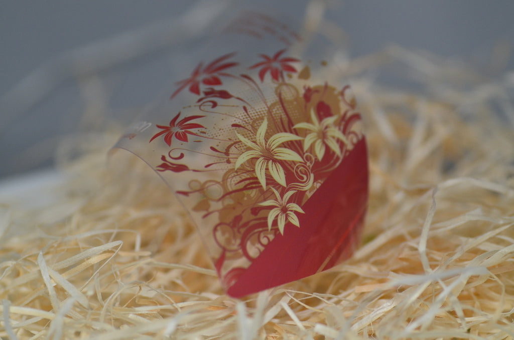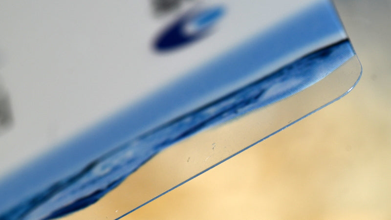 透明素材のプラスチックにお客様のご希望の形で白いシートを貼り、その上から印刷を行います。