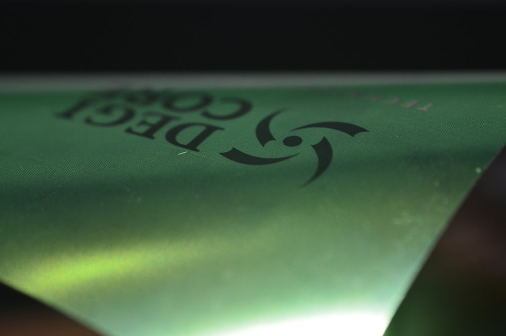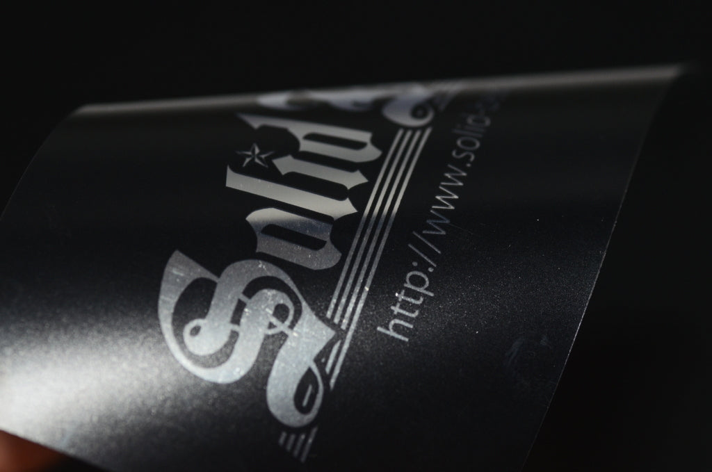 シルバーのプラスチック素材にオフセットで印刷を行い、紙では表現することのできないクールでスタイリッシュな表現が可能です。