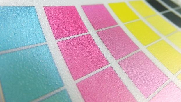 UV硬化型インキの表面を縮める事で、磨りガラス的な風合いを表現しています。